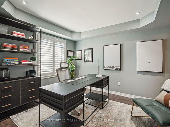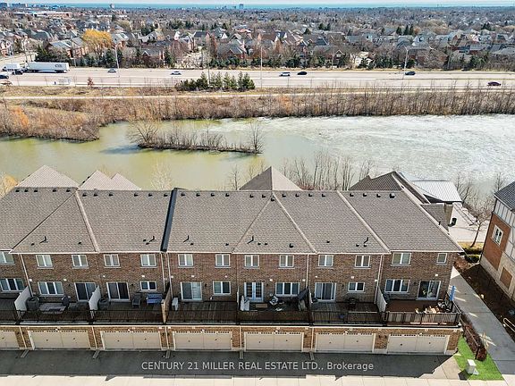 Welcome to this beautiful freehold townhome, perfectly situated fronting onto a scenic pond in the highly sought-after Preserve Community of North Oakville. This spacious and sun-filled home boasts hardwood floors throughout, ample pot lights, and elegant California shutters, offering both style and comfort. The open-concept design features a bright living room with a stone fireplace wall, while the new modern white custom kitchen boasts quartz countertops, a quartz backsplash, stainless steel appliances including a gas cooktop and built-in wall oven, and an island with a breakfast bar. The adjacent formal dining room showcases coffered ceilings, and the kitchen offers a walkout to a private balcony for outdoor enjoyment. This home includes five spacious bedrooms, with a main-floor bedroom featuring coffered ceilings and a 4-piece ensuite, ideal for guests or a home office. The upper level offers four additional bedrooms, including a primary suite with a 3-piece ensuite, while the remaining three bedrooms share a 4-piece main bath.Additional highlights include wood stairs with wrought iron spindles, a main-floor laundry room, and a double-car garage with inside entry. Prime location - close to top-rated schools, parks, shopping, restaurants, hospital, highways, and more!