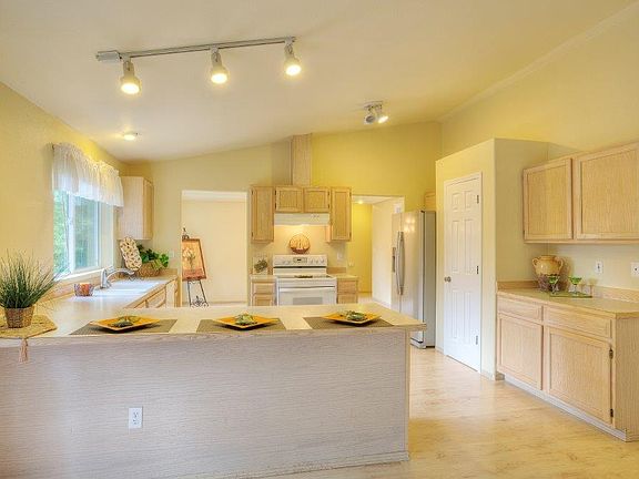 Fantastic & well maintained Rambler on private road. 3 bdrs, 2.5 bath, 2 car garage w/gas fire place, tile entry, vaulted ceilings, crown molding, freshly painted & new carpet. Enjoy your spacious kitchen w/breakfast bar, lots of cabinets, counter space and pantry, even a brand new dishwasher. Home also features rounded corners, updated light fixtures, nice sized back yard with deck & fire pit. An extra work shop area is located on the north side of the home with lots of storage. A must See!