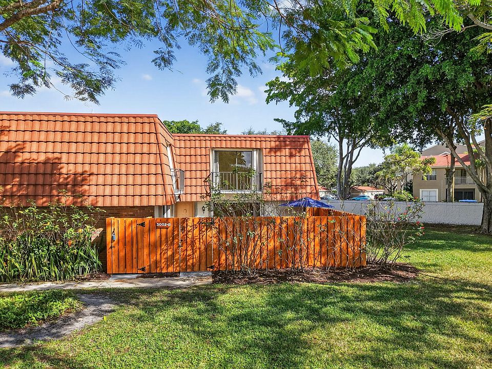 Investor Friendly as you can RENT RIGHT AWAY.BRAND NEW FENCE JUST INSTALLED offering privacy to dine al fresco on this patio and enjoy Florida's beautiful weather. This home offers hurricane accordion shutters for peace of mind. Neutral tile flows throughout home and NEW carpet on stairs. Peaceful and serene greenspace adjacent to this unit. Perfect for walking your dog or playing a game of catch. Pet friendly community accepting larger breeds up to 50 pounds. Delray Beaches Atlantic Avenue's vibrant coastal town offers a variety of restaurants, museums, nightlife and of course it's fabulous BEACHES! 10 minute drive to FLORIDA ATLANTIC UNIVERSITY. Easily access I-95 & major roads Don't miss your opportunity to purchase this unique condo that feels like a townhome & call this your home.