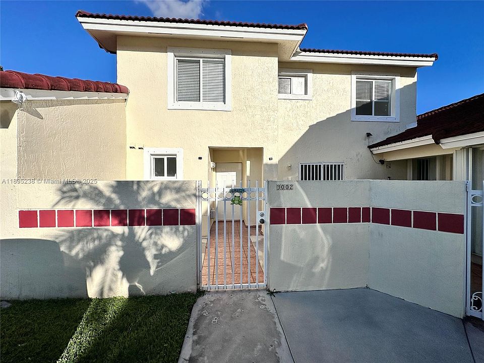 This Townhouse unit boasts 3 bedrooms, 2.5 bathrooms, and an inviting double-height ceiling layout filled with lots of natural light. Conveniently located near the Turnpike, Florida Keys Outlet Marketplace, and Baptist Health Homestead Hospital, you'll have everything you need just minutes away. Step outside to enjoy a lovely backyard and a cozy patio next to the main entrance, perfect for relaxing or entertaining. The community also features a pool and 24-hour security for your convenience. Don't miss out on making this beautiful villa your new home!