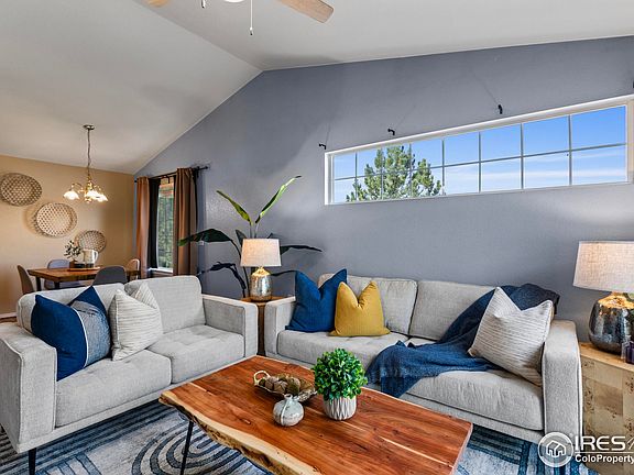Cozy, Sunset Living with Low Maintenance Ownership. Welcome to this light-filled 2-bedroom, 2-bathroom 2nd floor condo in one of Fort Collins' most convenient west-side locations. Situated in the well-maintained Saddle Ridge community, this home offers an inviting open layout and a private balcony with sweeping foothill views for enjoying Colorado sunsets. Additional storage of the balcony provides room for all your gear. The kitchen flows seamlessly into the dining and living spaces, creating an easy setting for daily living or entertaining. Each bedroom is generously sized, with the primary suite featuring its own en-suite bath. Additional highlights include full-size side-by-side washer and dryer, central A/C, and detached garage parking. The HOA covers exterior maintenance, so you can spend more time exploring the nearby trails, Horsetooth Reservoir, CSU campus, and the shops and restaurants of west Fort Collins. Additional amenities include a clubhouse with hot tub and pool. Whether you're searching for your next home or rental property, this turn-key condo checks all the boxes.