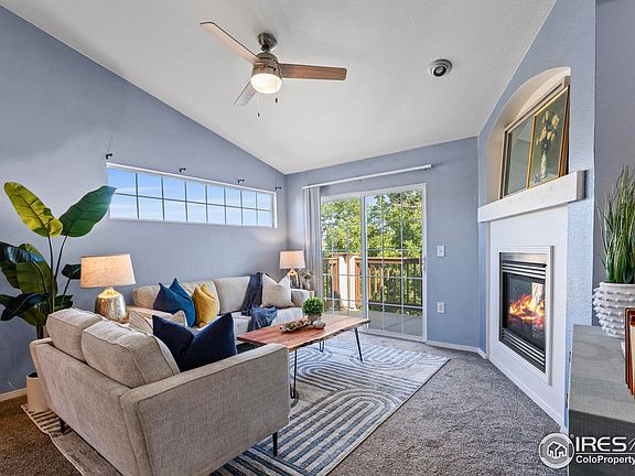 Welcome to this light-filled 2-bedroom, 2-bathroom 2nd floor condo in one of Fort Collins' most convenient west-side locations. Situated in the well-maintained Saddle Ridge community, this home offers an inviting open layout and a private balcony with sweeping foothill views for enjoying Colorado sunsets. Additional storage of the balcony provides room for all your gear. The kitchen flows seamlessly into the dining and living spaces, creating an easy setting for daily living or entertaining. Each bedroom is generously sized, with the primary suite featuring its own en-suite bath. Additional highlights include full-size side-by-side washer and dryer, central A/C, and detached garage parking. The HOA covers exterior maintenance, so you can spend more time exploring the nearby trails, Horsetooth Reservoir, CSU campus, and the shops and restaurants of west Fort Collins. Additional amenities include a clubhouse with hot tub and pool. Whether you're searching for your next home or rental property, this turn-key condo checks all the boxes.