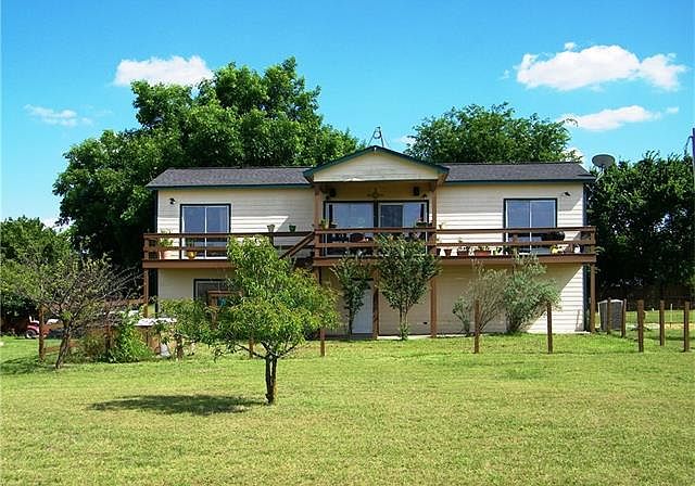 AG Exempt secluded 13+ acres with 2 houses! Main house living area is upstairs with deck that runs along the entire back of the home for gorgeous hill country views! Mobile home is nestled among beautiful trees, with private back yard. Mobile home will need some TLC - could be a great rental property or guest house. Large storage building could be easily converted to a 2 car garage! Windmill, 2 wells, fencing, cross-fenced! Goats and Donkeys convey! A little TLC and this property is definitely a gem!