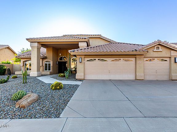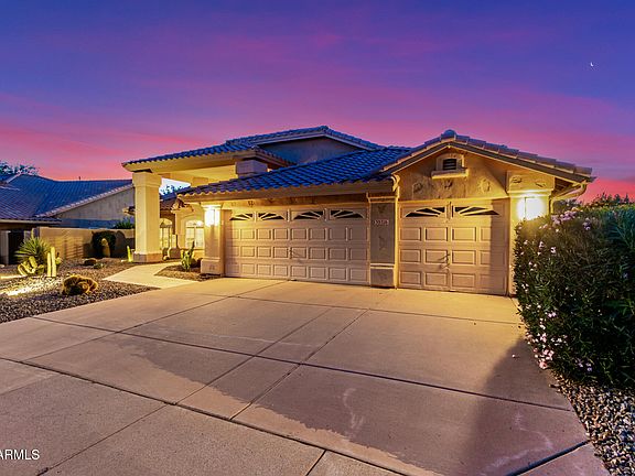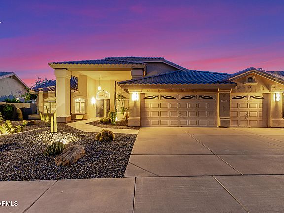 Discover this 1-of-a-Kind, breathtaking single-level lakefront, golf course home in the prestigious Desert Fairways at Tatum Ranch! This decorator-designed residence features soaring vaulted ceilings, elegant plantation shutters, lavish travertine floors & gleaming quartzite counters, 2 fireplaces & expansive living/dining areas. A chef-inspired kitchen dazzles w sleek stainless steel appliances, custom cabinetry & counters, striking mosaic tile backsplash, & large island/breakfast bar. Remodeled baths + master bedroom w fireplace & private patio access + oversized 3-car garage w built-in cabinets further enhance this pristinely updated home. Then be awed by the views from the resort-style backyard w heated pool/spa, built-in gas outdoor kitchen/BBQ/2 gas firepits & entertaining areas! Unwind in the luxurious main suite complete with a romantic stone-accented fireplace, direct access to the backyard, and a spa-like ensuite featuring dual sinks, a soaking tub, and a generous walk-in closet. Explore outside to your private paradise, an entertainer's dream! Enjoy sunset evenings on the covered patio, fire up the built-in BBQ, gather around the firepit, or take a dip in the sparkling pool and spa, all framed by panoramic views of the serene lake, lush fairways, and vibrant sunsets. This home is the perfect escape. Don't miss the chance to make it yours!