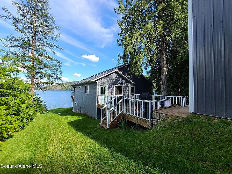 Experience this rare North Idaho Waterfront opportunity in the historic Tesemini Outing Club, a private community on Spirit Lake. Outdoor adventures like swimming, fishing, hiking, moose watching & huckleberry picking are part of everyday life. This property features 95 feet of pristine waterfront, plus a bright & open floorplan w/ soaring vaulted ceilings, modern flooring & ample natural light. Enjoy the living room w/ a wall of windows, cozy wood stove w/ stone surround & access to the deck w/ lake & wildlife views. Lovely gourmet kitchen w/ a pantry, locally-sourced wood cabinets, & SS appliances. 2 main floor bedrooms & bathrooms, including the primary suite w/ dual vanities & walk-in closet. Expansive lower level w/ a bedroom, ample storage space, full bath & family room w/ wood stove. Fenced yard w/ large lawn space & new PolyDock. 36x36 detached shop w/ loft & 3 car bay. Located near a sand bar, restaurants, trails, Silverwood & Mountains. Community clubhouse, events, & more.