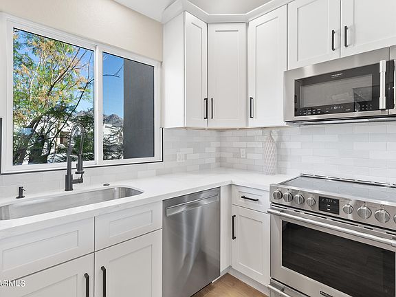 Welcome to this fully remodeled 2 bed, 2 bath residence in the sought-after, guard gated, Biltmore Courts! With the patio overlooking the Biltmore Golf, this charming home offers a unique blend of modern comfort and timeless character. As you step inside, you'll be greeted by a new kitchen and an inviting living space with abundant natural light, showcasing a cozy fireplace. The kitchen and bathrooms showcase new designer tile and new soft-close white shaker cabinets. There is new wood like vinyl plank flooring throughout, new quartz countertops and brand new stainless steel appliances. The master bedroom boasts an ensuite bath and a walk-in closet, while the additional bedroom offers versatility for guests or a home office. The surrounding area is brimming with attractions and conveniences. Enjoy the luxurious lifestyle that the Biltmore area offers, with world-class shopping and dining at the Biltmore Fashion Park just a stone's throw away. Nature enthusiasts will appreciate easy access to Piestewa Peak and the Phoenix Mountain Preserve, providing endless opportunities for outdoor adventures. With a prime location in the heart of the city, you're just a short drive from downtown Phoenix, making your work commute a breeze. This home is also situated within the highly regarded Madison School District, an excellent choice for families. The backyard with a covered patio is perfect for entertaining, and the two-car garage provides ample parking and storage. Don't miss out on this wonderful opportunity to make 3003 E Rose Lane your next home in the vibrant heart of the city.