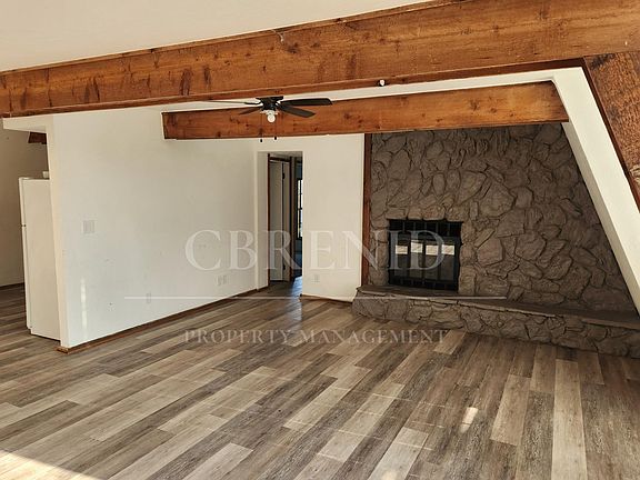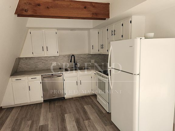 4 bed, 2 bath duplex. The unique rental features a large living/ dining area, with wood beams and fireplace. On the main floor, there is a kitchen (with all kitchen appliances included) , a utility room with washer and dryer hookups, and two bedrooms and a bathroom. On the second floor, there are two additional bedrooms and a bathroom. One upstairs bedroom has a small balcony. No fenced yard, lawn care provided. This property is not pet friendly.