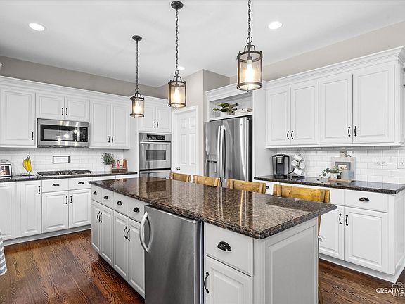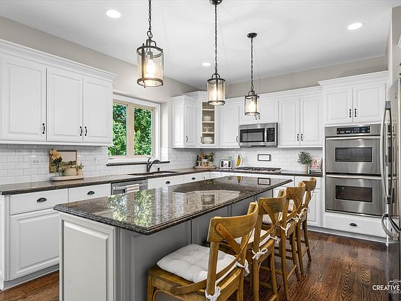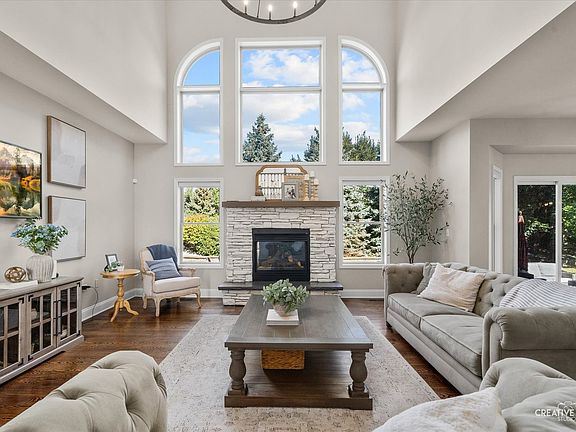 Tall Grass at its Finest! Nothing compares to this impeccably renovated 5-bedroom, 5-bath home-where high-end updates and stunning design blend together perfectly! Tall Grass at Its Finest! Perfectly situated on a quiet cul-de-sac in the highly sought-after Tall Grass community, this home offers access to resort-style amenities including a pool, tennis courts, and clubhouse. From the moment you step inside, the sellers' exceptional taste shines through. The grand two-story foyer welcomes you with rich hardwood floors, a dramatic geometric farmhouse chandelier, and a staircase with elegant wrought-iron spindles. Formal Living and Dining Rooms flank the entry, each showcasing designer touches and extensive millwork. The Dining Room, painted in a soothing shade of blue, features wainscoting and a bold black iron light fixture that adds a sophisticated edge. The heart of the home-the two-story Family Room-impresses with a stunning stone fireplace and a trending wagon wheel chandelier. The oversized Kitchen is both beautiful and functional, boasting crisp white cabinetry with updated hardware, granite countertops, subway tile backsplash, stainless steel appliances, and a beverage center built into the island. The walk-in pantry provides ample storage, and the new light fixtures tie the space together perfectly. You'll love the laundry room makeover-complete with a clever dog wash station surrounded by subway tile, a herringbone-patterned tile floor, and a floral wallpaper accent wall. Built-in cubbies add both charm and practicality. A shiplap-accented rear staircase leads to the upper level. The first-floor office, conveniently located next to a full bath with a walk-in shower, offers a flexible option for a guest suite or in-law arrangement. The remodeled full bath features basket-weave tile, a new gray vanity with stone top, and a sleek frameless shower door. Upstairs, the luxurious Primary Suite is a serene retreat with board & batten accent wall, tray ceiling, custom-organized walk-in closet, and a spa-inspired bath featuring dual sinks with marble countertops, a whirlpool tub, and a separate shower with new door. Through French doors, a sunny Sitting Room-complete with new ceramic flooring-offers the perfect spot for a second home office or private escape. Bedrooms 3 and 4 share a Jack & Jill bath, while Bedroom 2 enjoys its own private ensuite. The finished basement is an entertainer's dream with a second fireplace, full wet bar with dual refrigerators, microwave, and kegerator, plus an additional bedroom and full bath. Outside enjoy the private fenced backyard with a beautiful paver patio, fire pit & irrigation system. NEW WINDOWS IN FRONT OF HOME & BEDROOMS 2023! NEW ROOF 2020! 2 NEW A/C & 2 NEW FURNACES 2019! Award-winning Fry Elementary and Scullen Middle School are right in the neighborhood! Route 59 shopping, restaurants & entertainment is close by. Tall Grass is just a short drive to Downtown Naperville & all it's amenities. Sellers would like a January 30th close with rent back until February 27th.