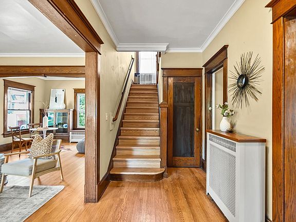 Upper East Side Beauty! This timeless Arts & Crafts style home invites you in with hidden gems throughout: original woodwork, stunning built-ins, and unique stained-glass accents. Handcrafted with quality materials and designed with simplicity and nature in mind, this home is full of charm and character you won't find often. Offering 4 spacious bedrooms plus a finished attic; perfect for a 5th bedroom, or an additional living space with bathrooms conveniently located on every level. The home features a beautiful blend of oak and maple flooring throughout, adding warmth to every room. Enjoy a large deck built above the garage, ideal for entertaining or relaxing with family and friends. Every space in this home was thoughtfully designed, making it as functional as it is beautiful.