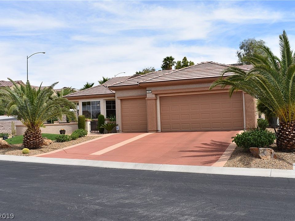 Move in Ready, beautiful landscaping, partial view from kitchen nook. Has 3 Solar Tubes, Security Doors front and rear. Granite tops with newer kitchen appliances. Includes fountains in front and rear yard & a bolted down Safe in Master Bedroom closet. Driveway, walkway and rear yard textured surface. 2 1/2 car garage for golf cart. Second Bedroom has a built-in Murphy Bed. Garage has built in cabinets.