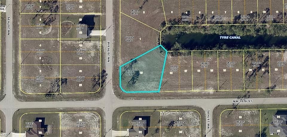 Look what we have to offer NW Cape Coral northeast exposure pie shape at Tyre Canal! Buyer assume all assessments if any??? 20% down, 5% interest $128.84 monthly payment, 5 year balloon