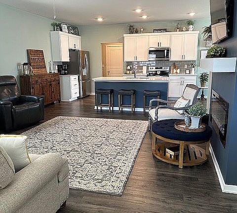 Welcome to your cottage townhome in the 36 West community where you have access to an exclusive clubhouse, pool, and pickleball court. Stress-free living is automatically included with lawn care, irrigation and snow removal taken care of for you. This 3-bedroom cottage sits on a corner lot, has 2.5 bathrooms, an attached 2-car garage, custom plantation shutters, a new whole-house de-humidifier (2024), and a newly installed patio (2023) for entertaining guests. This home is move-in ready with all appliances included. The floor plan offers a spacious living room, and a cozy fireplace with mantle. Entertain in the large kitchen boasting white cabinets, a gray tile backsplash, and a large island for food prep and gathering. The spacious walk-in pantry also provides plenty of storage while the dining room, located off the kitchen, allows you to visit with family or guests. The master bedroom features a large bathroom, walk-in closet, shower, and vanity with a double sink. The finished lower level has a 2nd and 3rd bedroom, full bathroom, spacious living room, and more storage areas. If escaping to a cottage at the end of the day is what you dream of, then this is the home for you!