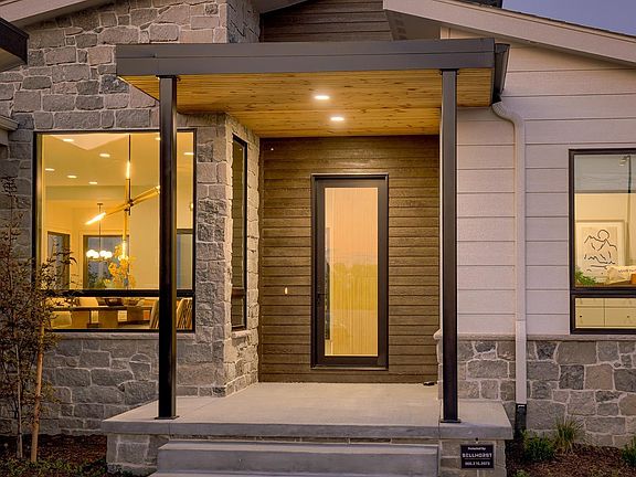 Mountain modern design was the inspiration for the Aspen Villa by Nathan Homes w/ an emphasis on the indoor/outdoor experience. Many one of a kind custom crafted details. Gourmet Kitchen features walnut cabinets, waterfall countertops on island, eat in banquette w/ hand crafted walnut table, stucco hood, quartz backsplash behind cooktop, stone backsplash, entertainer’s dream sink w/ integrated beverage station, cutting board & wine glass cleaner. Monogram appliances: 48" built in refrigerator, gas cooktop, wall oven, built in convection/ microwave, fully integrated dishwasher, Wi-Fi connect hood liner. Floor to ceiling Colorado stone fireplace, gas linear fireplace, wood-look tile flooring. Primary suite bath boasts floor to ceiling walnut cabinets, thick edge countertop, walk in open shower w/ half glass wall, marble tile, walnut accent wall treatment to match the primary suite & heated floors. Lower level is perfect for entertaining, W/O to cozy patio w/ gas firepit