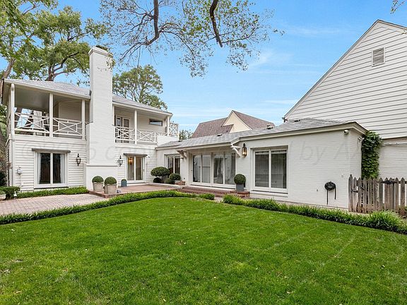 Elegant & expertly transformed. New primary suite offers a retreat with views of outdoor living area, wood-burning fireplace with marble surround, custom closet, & spa-like bath. NEW kitchen boasts custom cabinetry, island, brass hardware & faucets, plus new appliances. Additional highlights include two wet bars, formal dining room with built-in china cabinets, designer lighting, custom silk curtains, wallpaper & new wood floors. THREE primary suites—one doubling as second living area or mother-in-law quarters. Front upstairs primary features two walk in closets & balcony wrapping the exterior. New Pella windows throughout most of the home. Many updates to electrical & plumbing. Finished basement with bath. Class IV roof.