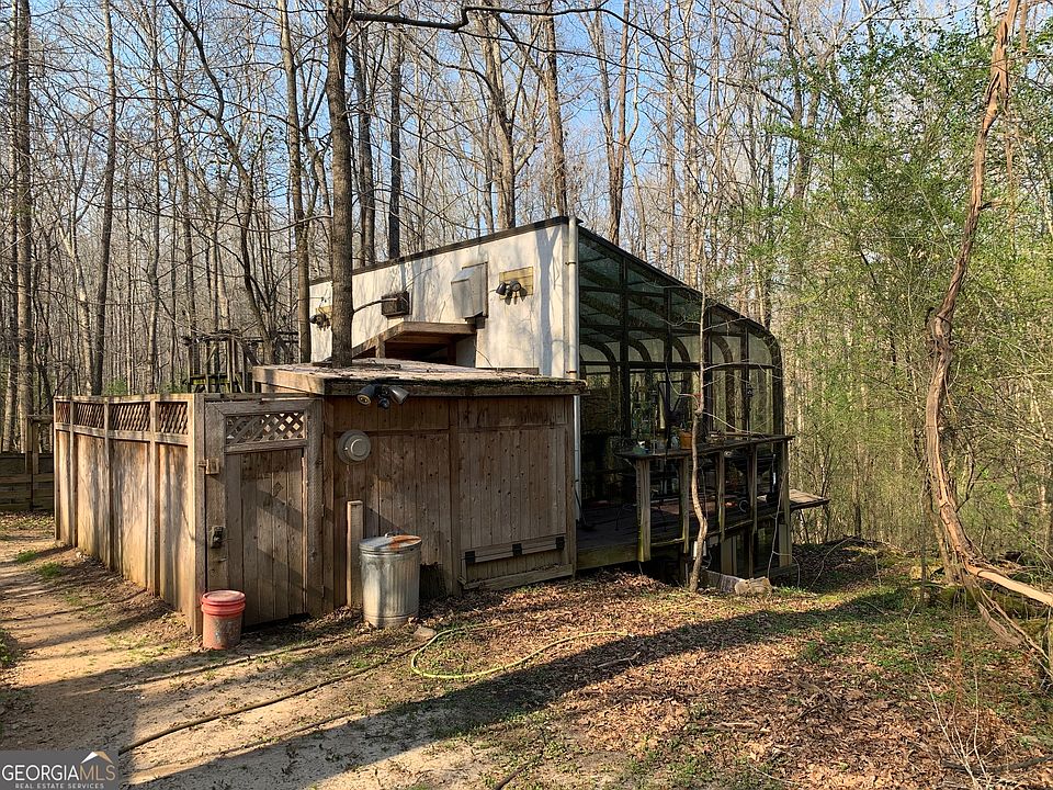 This Oconee property is an amazing opportunity, offering over 135 wooded acres with a creek, natural springs, and a 1000+ sqft solarium providing a 1 bed, 1 bath refuge amongst the trees. PROPERTY FEATURES: *1037 SqFt solarium with 1 bed and 1 bath *solar equipment (valued approx $150,000 at install!) *large creek with some picturesque small waterfalls at back of property *two springs: one on front portion that is sourced on the property and one on back portion sourced on neighboring property *storage building *additional driveway option via driveway easement that cuts in from JT Elder Road could provide a second entrance closer to middle of property *listing consists of three combined parcels for a total of 135.31 acres: A11007 22.95 acres, A11007C 24.21 acres, and A11007D 88.15 acres (Please note: parcel A11007D 88.15 is in a conservation use easement through 12/31/2027; the contents of the house and storage building do not convey with sale)