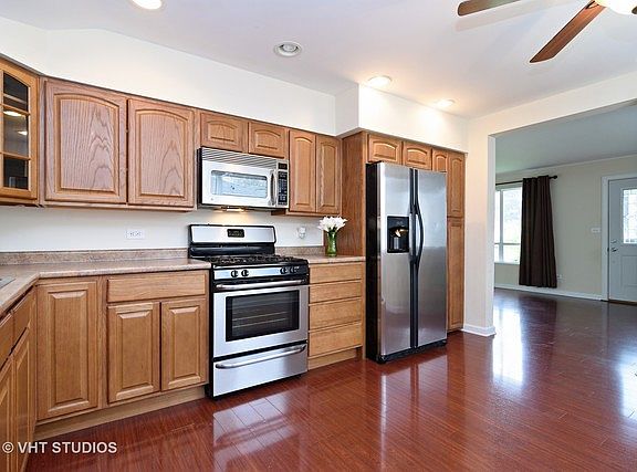 OH so cute 3 bedroom ranch with basement is here for you to call home! Nestled in sought after Kimball Hill subdivision, this move in ready home has what you need! Enter in the front door and be greeted with wood laminate flooring throughout the main level. A roomy living room and eat in kitchen with canned lights and stainless steel appliances, make hosting a breeze for all of your gatherings. 3 nice sized bedrooms and an updated bathroom with Kohler sink, toilet, and travertine tile in the bath make up the main floor. The extra large basement is waiting for you to finish with a bath rough in already in place or use as-is for extra storage. Be at ease with a newer house roof and newer furnace and water heater. Windows have been replaced in the bedrooms and bath! A massive backyard for summertime fun and fantastic views of the 4th of July firework show! A very short distance to the Community Center, Nelson Sports Complex, parks, and schools. This one is sure to go quick!