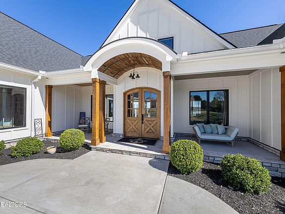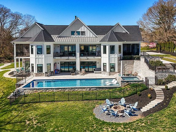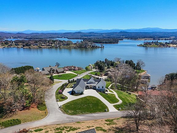 Imagine living the life on the water you have always wanted! This waterfront home in Lakeshore Meadows offers an incredible opportunity to wake up each morning with sweeping views of the water and mountains of East Tennessee. This home opens up like the perfect package through the foyer and its barrel shaped ceiling with tongue and groove. Soaring ceilings, exposed beams, hardwood floors and more are merely some of the beautiful touches within this primary living space plus a wall of glass creates the perfect framed view. A two-way fireplace and an extended wall create a boundary between the primary living space and the formal dining area and access to the upper balcony allows family and guests to spill outside to enjoy beautiful sunsets. The eat-in kitchen is spacious with a large island, butler's pantry, double ovens, stainless appliance and large island/breakfast bar offering all the tools and space you need for hosting parties of one or many. Off the kitchen is an enclosed porch with fireplace perfect for all seasons and an ideal location to enjoy time home while taking in the view. The primary suite is spacious enough for a small seating area and also has its own private screened in porch for quiet time at the beginning and end of your day. The attached bath offers a spacious walk-in shower, dual vanities, large walk-in closet and access to the laundry room. Another en-suite bedroom completes this upper level while the lower-level offers a large recreation room perfect for gaming tables and lots of seating plus the secondary kitchen helps create the ideal spot for hosting lake and pool days for all your family and friends. A secret bedroom behind a built-in bookcase will be a delightful surprise for anyone and the remaining two bedrooms with a Jack-n-Jill bath complete the interior. There are many options for outdoor entertaining with a beautiful pool, bocce ball court, hot tub, grilling station with bar, fire pit plus a dock for boating and swimming. An incredible opportunity to live the type of life you have always yearned for!