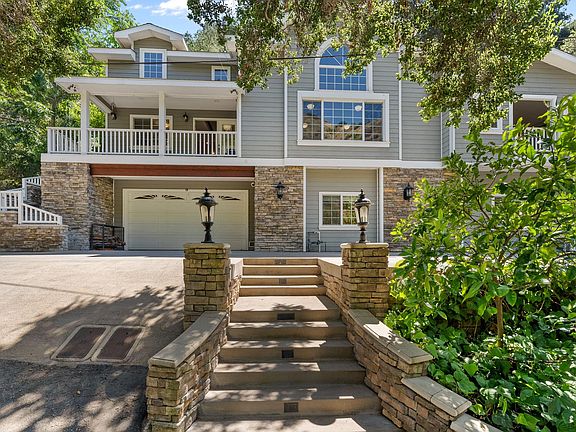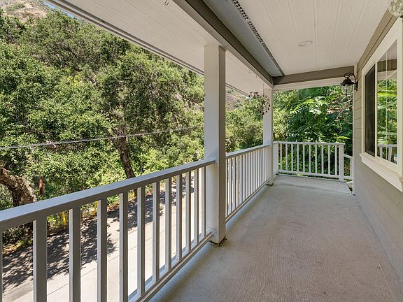 Custom three-story Silverado Canyon home with spectacular mountain views. The second story features a voluminous living room with a double-sided fireplace and a beautiful view of the oak canopy and canyon. The large primary suite features, a walk-in closet, French doors to view, plus a large soaking tub with laminar flow ceiling tub filler & large 2-person shower. Granite counters are featured in the deluxe kitchen with stainless appliances and a center island cooking center. The second floor also has a small bedroom or office next to the primary suite. The third-floor loft has a desk/workspace with cabinets and library bookshelves overlooking the living room. There are two large bedrooms each with french doors leading to the decks and solarium and a freshly updated bathroom with a deep soaking tub. Terraced grounds with walking path, covered patio, terraced planters & firepit. The backyard patio is excellent for entertaining and has a sensational mountain view as you look out over the rooftop. Below is an enclosed separate dog run. The first floor is a MIL apartment with a good-sized bedroom, bathroom, storage, and a second kitchen.