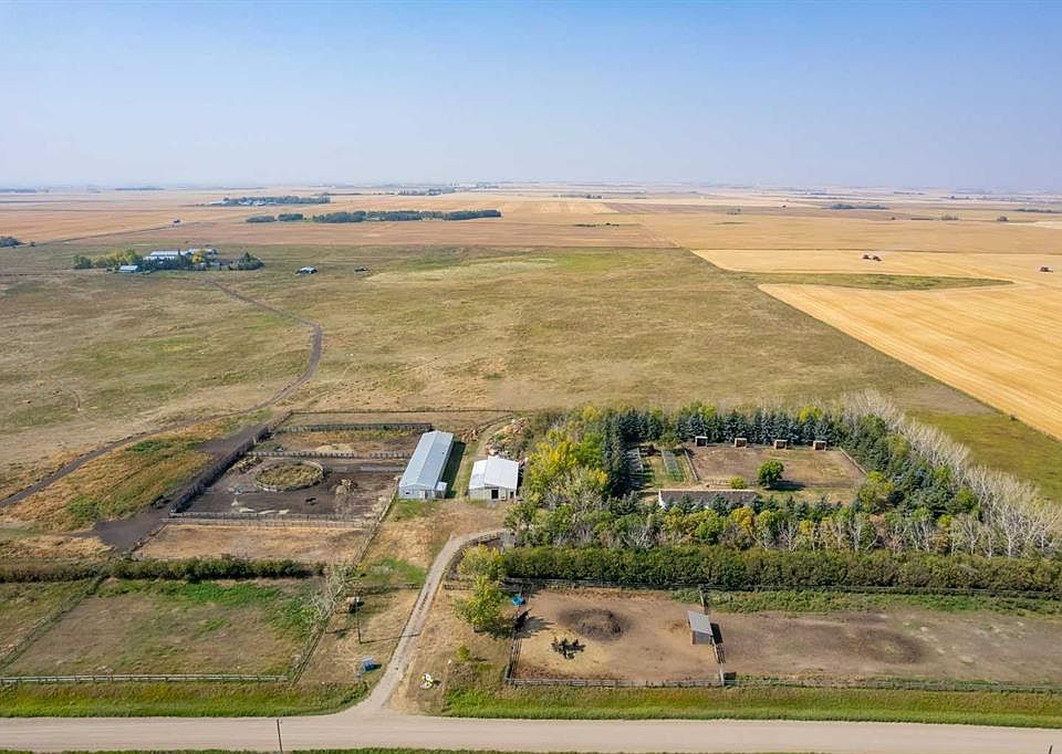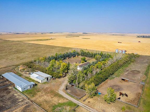 Incredible opportunity to own 120 ACRES of native pasture just 25 km east of CARSTAIRS! This beautiful property features a 1,500 sq ft modular home with 2 bedrooms (was 3 bedrooms + a Den, converted into 2 bedrooms so could have 4 bedrooms), 2 full bathrooms, drywall interior, and brand-new appliances (2024) & an OPEN CONCEPT LAYOUT. The home has been well maintained & could be Perfect for multi-generational living or future development of a 2nd/new home. Equestrian-ready with a 4-year-old- 8-stall barn (3 double, 2 single stalls) and foaling cameras. Includes a heated 36' x 30' WORKSHOP/GARAGE, 5 fenced paddocks (4 with shelters), 2 auto waterers, 96’ x 160’ outdoor riding arena (convertible into 4 paddocks), and a 96’ long shelter. There’s even a full 1-mile dirt track for training or riding. The land is serviced by a strong well, new pressure tank (2023), and a deep SPRING-FED DUGOUT & a great MATURE TREE ROW surrounding the yard site. Conveniently located approx. 1 hour to Calgary or Red Deer. This is a turn-key rural property you've been waiting for!