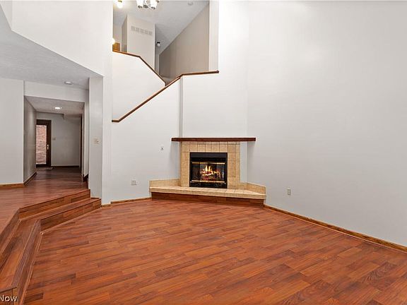 This Bretton Woods Condo townhome is perfectly tucked away from Center Ridge Rd and features many recent updates. Brand new flooring greets you as you step inside. Admire the bright & airy feel as it carries through the whole entire home. The vaulted great room boasts a cozy gas fireplace and sliding glass doors to the serene backyard, nestled amongst nature and beautiful trees. Enjoy the seamless flow to the eat-in kitchen and inviting breakfast nook. This spacious kitchen has been completely updated with painted cabinetry, countertops, backsplash, stainless steel appliances, and flooring. Up the stairs are 2 massive master suites both including a full bathroom and walk-in closets. Other wonderful features include fresh paint throughout and attached 1-car garage. Easy access to I-90/480, airport, Bradley Woods Reservation, shopping, and more. Schedule your private showing today!
