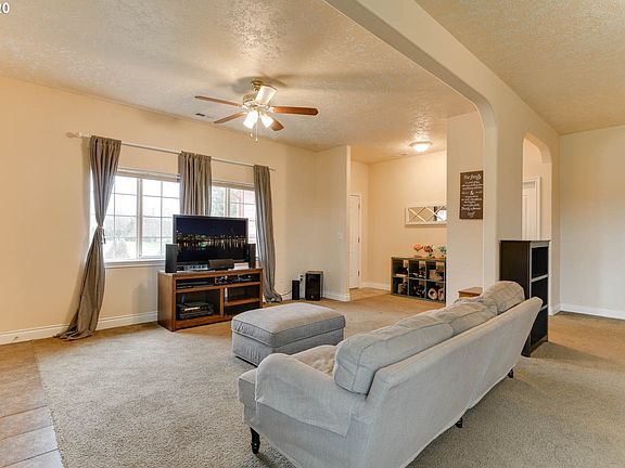 Spacious home on 6.8 acres of flat land. Home includes 4 large bedrooms, 2.5 bathrooms, and lots of storage. Enjoy entertaining on your expansive covered deck. Beautiful views of Mt. Hood from this property. Huge 2,656 sq ft shop (32x83) with concrete floors, 220V,plumbing, and heated office space. Livestock barn with loafing area. Mature fruit trees and fenced garden area. Great location with easy HWY access. Only minutes to golf course and the Barton/Carver boat ramp. Agent related to seller.