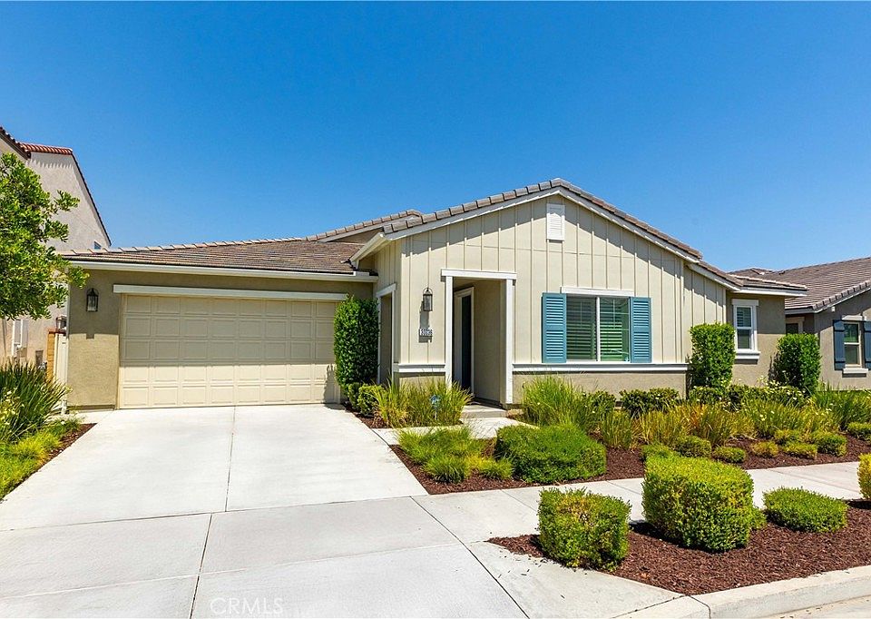 Rarely available! Discover this stunning 2020-built, single-story multi-generational home in Audie Murphy Ranch. Take advantage of a 2.99% VA assumable loan for qualified buyers! Boasting 2,881 sq ft with 4 bedrooms and 3.5 baths, this home features a private Multi-Gen Suite with a separate entrance, kitchenette, en-suite bath, and laundry hookups – perfect for extended family or a dedicated home office. Enjoy an open-concept great room with a gourmet kitchen, large island, stainless steel appliances, granite counters, and a walk-in pantry. The primary suite offers privacy, a luxurious en-suite, and a huge walk-in closet. Upgraded luxury vinyl plank flooring, plantation shutters, and a spacious utility room elevate the interior.Outside, relax in the California Room, or enjoy the low-maintenance backyard with artificial turf and stylish hardscaping. A 3-car tandem garage with epoxy flooring and a leased Tesla solar panel system complete this exceptional property. Audie Murphy Ranch offers incredible amenities, including resort-style pools, a clubhouse, sports park, and a vibrant community calendar. Don't miss your chance to own a nearly new home in this sought-after, sold-out community!