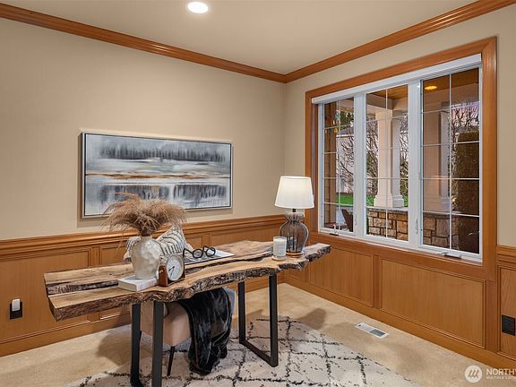 On a large corner lot in Montaine at Aldarra, this exceptionally maintained, former John Buchan model home backs to a greenbelt for ultimate privacy. Thoughtfully designed 3,550 sq.ft. layout features 4 bedrooms, a main-floor den, & guest room, plus bamboo floors, wide hallways, & fine millwork. The living room boasts a vaulted ceiling, bay window, & marble fireplace. The gourmet kitchen includes stainless steel appliances, granite counters, & a large island. A double-sided fireplace warms the family room. The primary suite has a tray ceiling, spa-like bath, & walk-in closet. A fully fenced backyard with a hot tub, patio, & lush landscaping offers a serene escape. New furnace & central A/C. Close to parks, top-rated schools & Duthie Hill.