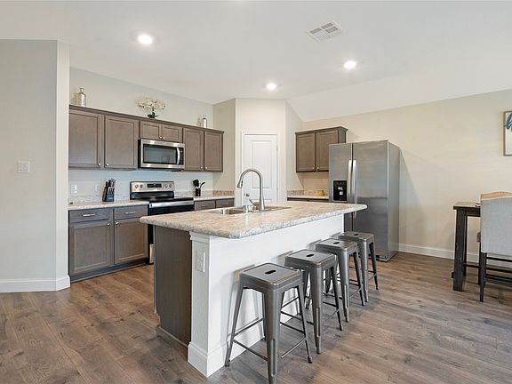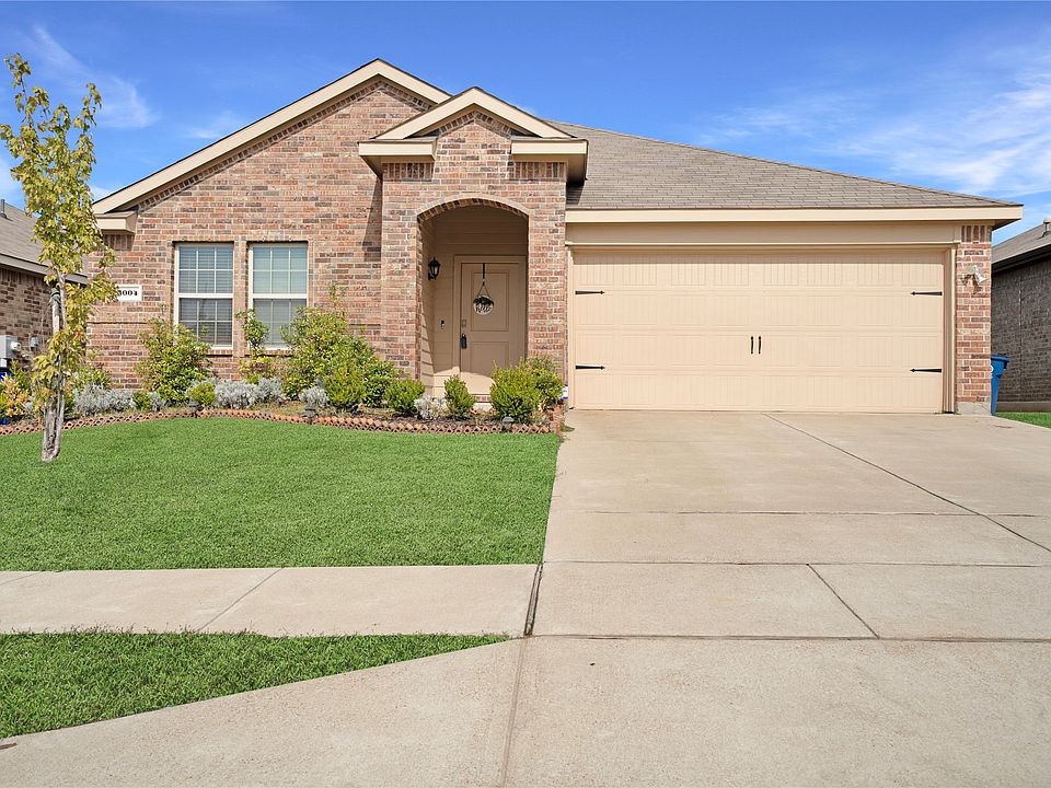 Welcome Home to Windmill Farms! Discover this recently built brick DR Horton home, offering modern comfort and timeless style. Located in the highly sought-after Windmill Farms community, this 4-bedroom, 2-bath home combines affordable luxury with everyday convenience—within walking distance from Forney ISD schools, scenic parks, jogging and bike trails with a sparkling community pool. Step inside to a bright, open-concept floor plan featuring a spacious living area with luxury laminate flooring that flows seamlessly throughout the home. The beautifully designed eat-in kitchen provides ample workspace for meal prep and casual dining, while the modern backsplash, solid wood cabinetry, stainless steel appliances, and generous counter space make this kitchen a true centerpiece for entertaining and family gatherings. The primary suite is a serene retreat with a spa-inspired ensuite showcasing a large walk-in shower, spacious vanity, and large walk-in closet for exceptional storage. Three additional bedrooms offer flexibility for guest rooms, kids’ spaces, or a dedicated home office. Enjoy outdoor living in the expansive backyard with a covered patio—perfect for summer barbecues, family celebrations, or simply relaxing after a long day. Windmill Farms residents enjoy access to community amenities including playgrounds, walking trails, and a friendly neighborhood atmosphere. With all major systems in like-new condition, this home is move-in ready and waiting for you to make it your own!