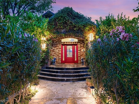 This house truly has warmth & soul. One-of-a-kind double gated Historic Downtown Vegas home. Stunning architecture. Tesla Solar & Batteries. Lush grounds & remodeled pool (with full automation). Downstairs oversized master sanctuary: waterfall, sauna, 11 shower heads & soak tub. 3 story custom master closet. Remodeled living room: wide fireplace, 30'+ ceilings and 6' wide chandelier. Stainless steel appliances. Smart home. Second master: jacuzzi, steam shower, fireplace & private balcony. Multi-Gen / in-law suite with side entrance, walk-in closet and remodeled bathroom. Stunning epoxy flooring. Super lush landscaping with 20+ fruit producing citrus trees. Full house water filtration and softening system. Digital shower controls for downstairs master and secondary suite. Also available to rent, rent with option to purchase and owner financing available @ 4.75%!