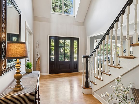 Welcome to your private oasis at the end of a serene cul-de-sac. This move-in-ready, 4-bedroom home is an entertainer's dream, featuring an updated kitchen with abundant cabinetry, center island and access to the spacious deck. The Kitchen flows into the family room with volume ceilings, eye catching fireplace and plenty of windows for light. The spacious living and dining rooms with bay windows are great areas to gather. The first-floor den, enclosed by French doors features a large closet and offers the perfect space for a home office, or potential fifth bedroom. Rich hardwood floors create a warm, inviting atmosphere throughout the main level. The luxury primary suite is the perfect retreat with vaulted ceiling, sitting area and a walk-in closet. Wait until you see the fully remodeled spa-like primary bath with freestanding tub, large walk-in shower and a 2-tier vanity with double sinks and marble countertops. There are 3 other spacious bedrooms upstairs and remodeled hall bath. Head downstairs to the finished basement, offering endless possibilities with 3 different entertaining areas. The movie screen with equipment and sectional stay so you can move in and enjoy some relaxing time immediately. The true highlight is the breathtaking, park-like backyard, a tranquil escape with a large deck, fire pit, sprinkler system and lush greenery. This is one of the biggest lots in Ashbury and has a 3-car garage! You will also have access to the neighborhood pool and clubhouse completing this wonderful lifestyle. Every detail has been considered, leaving you nothing to do but move in and enjoy this amazing home.