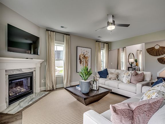 Welcome to the stunning Warwick plan - a spacious and thoughtfully designed home with a 3-car garage, including an enclosed 3rd car bay for added versatility! This 5-bedroom residence impresses with a dramatic 2-story foyer and a bright, open-concept layout on the main floor. The heart of the home is the chef-inspired kitchen, featuring dual oversized islands, a generous walk-in pantry, and upscale finishes—perfect for entertaining and everyday living. The adjacent living and dining areas flow effortlessly together, centered around a cozy gas fireplace and a sun-drenched sunroom for year-round enjoyment. Upstairs, the elegant primary suite offers a private sitting room and a spa-like bathroom with a window seat, creating the perfect retreat. Hardwood stairs lead to a versatile loft area, ideal for a media room, study space, or lounge. With thoughtful details throughout, the Warwick plan blends style, comfort, and functionality in every corner.