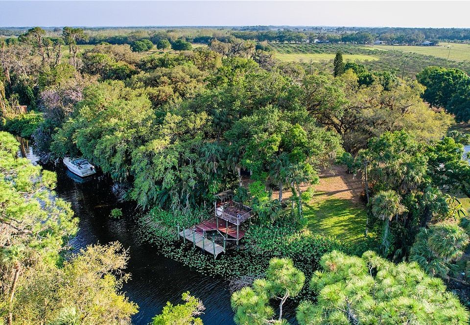 Majestic & secluded riverfront oasis!!! Spectacular waterfront property full of possibilities and is ready for you to make it your own. Just shy of one acre of land this 2 bedrooms, 2 bath home has an attached two car garage + detached garage and workshop. Features include vaulted ceilings, fireplace, skylights and huge screened back patio. Park-like setting with lush landscaping, private dock, gazebo and direct access. Must see opportunity to revamp your dream home or create a relaxing getaway!