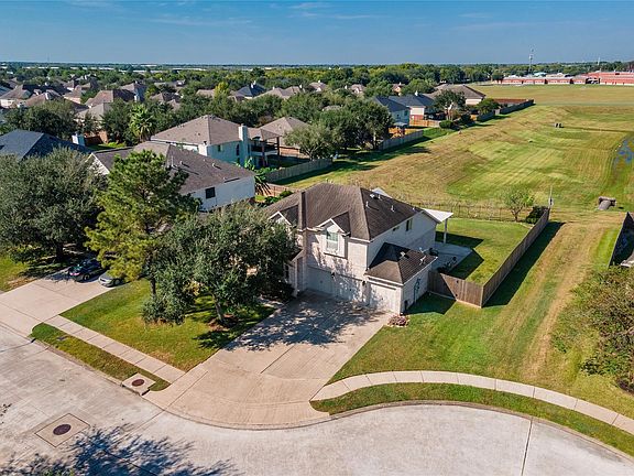 Picturesque property on over 1/4 acre and quiet cul-de-sac provides stunning views of the greenbelt from your backyard with unmatched privacy and no back neighbors! Perfect finished three car drive-through garage leads to wraparound concrete and covered back porch. Inside, find a spacious primary suite downstairs, guest suite, game room, formal dining, and a home office with French doors. High ceilings, 10k+ upgraded engineered wood flooring, 100% pure silk carpet in living room, new carpet in bedrooms and game room, fresh paint throughout, water heater 2024, roof vents/jacks 2019, a/c compressor for both units 2012, fan motors replaced 2018/2019, updated fixtures and toilets, new garbage disposal, granite countertops in kitchen, manual transfer switch for generator, natural gas line for generator or outdoor cooking, and extra attic storage area. This home offers luxury living in a prime location near top-rated schools, shopping, dining, and convenient access to major highways!