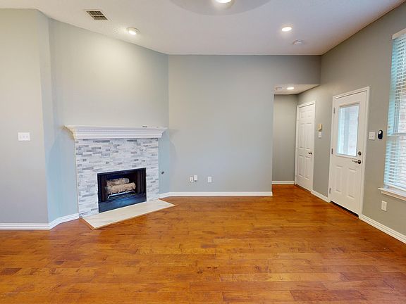 Gas-log fireplacePrivate backyardHigh ceilingsStainless steel appliancesTile flooringCovered patioLarge walk-in closet