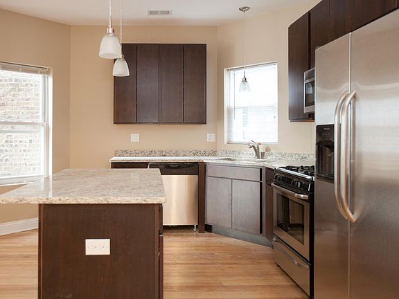 Enjoy this newer top floor 3bdr 2bth near Blue Line in booming Avondale/Logan Square area featuring: --Newer kitchen w/SS appliances and granite c/top --Newer doors and trim --Newer bathrooms including tiles, vanity, all fixtures --Newer hardwood floors --High-efficiency furnace --Fully insulated apartment with LED light fixtures --In-Unit Washer and Dryer --Backyard for summer activities. --Separate dining room. --Vacant and easy to show. --Credit history and background check applicable. Available July 1