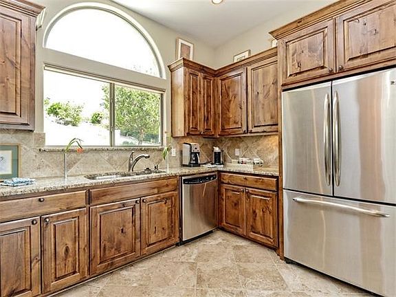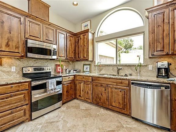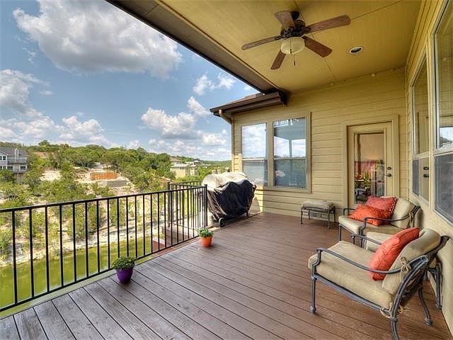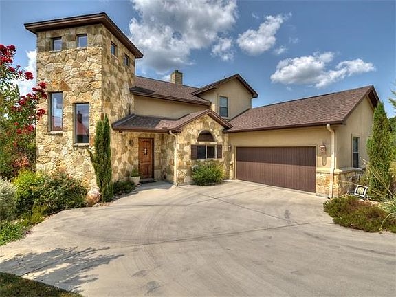 Lake views included with this 3 bedroom, 2.5 bath cliffside home anchored in a cul-de-sac with serene, private setting. Conveniently located near 620, this 2-story home offers an open floor plan and has custom features throughout including, Knotty Alder cabinets, designer light fixtures, Hunter Douglas window shades, granite counters, and a tall sandstone fireplace. 1st floor and 2nd floor balconies provide a great place for entertaining as well as an unobstructed view of the lake below. Exceptional...