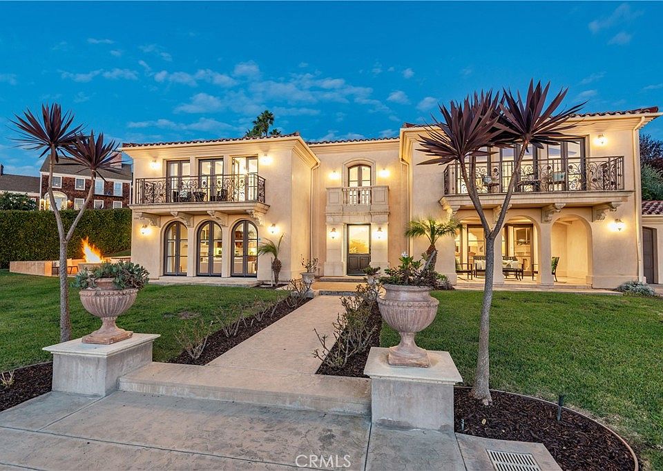 Discover true coastal luxury in this exquisite Mediterranean-style estate, perfectly positioned to capture sweeping ocean vistas from nearly every room. Enter through a private gated entry and step into a spacious grand foyer, where a dramatic spiral staircase sets the tone for the elegance found throughout the home. Designed for both comfort and sophistication, this residence features three stately fireplaces, custom-crafted ceilings, and French doors that bathe the interior in natural light while opening seamlessly to outdoor living spaces. The dream kitchen is a chef’s delight—complete with premium appliances, rich cabinetry, granite counters, custom backsplash, center island with breakfast bar, large walk-in pantry, and a dedicated wine chiller for effortless entertaining. The home features 5 bedrooms with one suite on the main level. The main primary suite features panoramic views, fireplace, plus large bath and dream closet. A second primary suite also has panoramic views. Every detail reflects refined craftsmanship and timeless style, creating a warm and inviting atmosphere within this luxurious estate. Perfect for those seeking serenity, beauty, and coastal grandeur.
