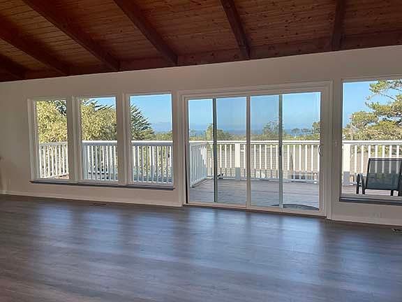 Ocean View! Golf Course View! Inside the premier gated Pebble Beach community, ideal living near the coveted Monterey Peninsula Country Club. With expansive, picturesque ocean and MPCC golf course views from the main living area, built in 1986, 2,832 sf home offers 3 bedrooms, 2.5 baths, 2 car garage plus golf cart storage and additional 2 car park space besides driveway, large fenced backyard, 2 gas fireplaces, 2 gas furnaces, a wet bar and 2 kitchens, a full kitchen appliance set, plus wine cooler, washer and dryer, etc. Soaring vaulted ceilings, streaming natural light, large deck off of the living area and multiple living spaces. The master bedroom with en-suite bathroom and another half restroom are located on the main living area, while 2 bedrooms, full bath and an additional living space located downstairs. All other famous Pebble Beach golf courses, Carmel-by-the-Sea, Pacific Grove and Monterey are nearby. Up to 1,000mbps high speed internet is available in this area, AT&T Fiber or Xfinity Cable. These pictures were taken by iPhone in February 2022 after remodeling. Renter pays utilities. Non-smoking.