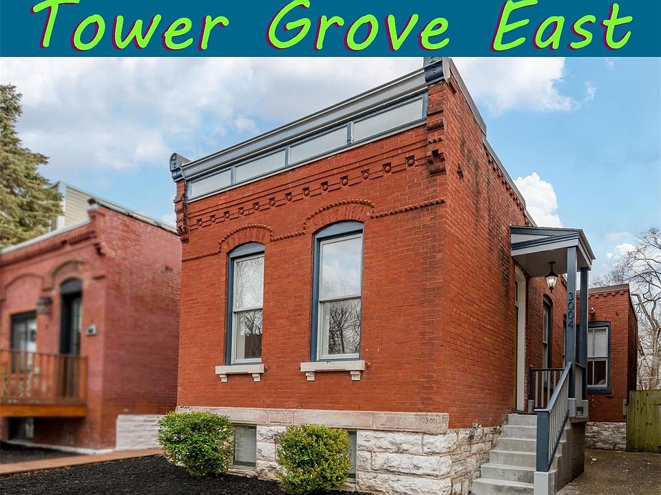 OPEN HOUSE CANCELLED Fab Tower Grove East Gem w/loads of upgrades & style! Super walkable to local restaurants & parks! Charming brick exterior & covered side entry. Soaring ceilings w/open feel to the stunning updated kitchen! Slate grey cabinets, gorgeous quartz counters wrapping large island, exposed brick & striking light fixtures make this home SING! Cherry hardwood flow throughout including down the hall! The beautiful newly renovated bath will have you excited-Nice double bowl modern floating vanity, sharp custom tile, tub/ shower w/slab glass & sharp fixtures. A WOWZY master bedroom-amazing lighting & nice sized closet. The guest bedroom has super cool built-in beds/desks that can stay or go. Stretching to the lower partially finished basement that's perfect as a media room & office! Enjoy the nice patio & fenced backyard- maintenance-free and meant to enjoy. 2 off-street parking spaces:) Come enjoy the city in style whether for personal use or a high-demand rental/Airbnb!