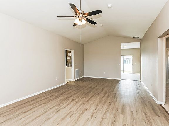Some images have been virtually staged to help showcase the potential of spaces in the home. The furnishings shown are for illustrative purposes only and are not included in the home. Fall in love with this Lehigh Acres rental home with three bedrooms and two bathrooms in 1,537 square feet. You'll love the living room's high, vaulted ceiling, cooling ceiling fan/light fixture, its spaciousness, and how it conveniently opens to an unusually large laundry room and the bedroom hall. The dining room doors open to a backyard large enough for entertaining, and you'll love the eat-in kitchen, where you'll find a double sink, granite countertops, and a peninsula with a breakfast bar for casual meals. The spacious primary bedroom features a ceiling fan with a light fixture, a big wardrobe and a small closet, and a private bathroom with a bathtub and shower. Apply for this home today.