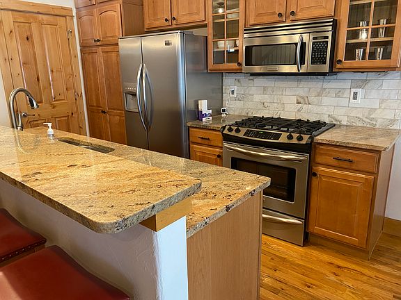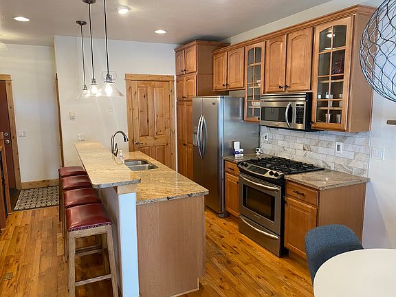 WINTER ONLY-Enjoy modern mountain living in this welcoming 3 bedroom 3.5 bath, end unit. The three level townhome has an open floor plan, with the main level connecting the kitchen and dining to the main living area, creating an inviting space for entertaining guests or simply enjoying family time. The kitchen is equipped with stainless steel appliances, sleek granite countertops, and ample storage space. As you make your way through the living room, large windows flood the space with natural light, and a sliding glass door leads to a spacious covered wrap-around deck. The primary bedroom is an en-suite with a King bed and well-appointed bathroom, and walk-in-closet. A second bedroom, also located on this level, offers versatility as a guest rom with a queen bed, and its own full bath. The lower level adds another layer of living space to this townhome. An additional family room with sectional sofa and large wall mounted TV, and bar with a mini fridge and sink, beckons for cozy gatherings or movie nights, while the third bedroom and stackable washer and dryer are also located on this level. There is a powder bath (1/2 bath) off the kitchen. Adjacent to the kitchen is a one car garage, providing secure parking and additional storage space for your skis. In floor radiant heat, and heated driveway. Situated 1/2 mile away front the ski resort. The free Steamboat bus stop is steps away. NO PETS (HOA rules), NO SMOKING. 2 cars ONLY (1 in garage, 1 in front of garage. NO on street parking allowed) Cable Tv, internet included. First, Last, and Security Deposit required upfront. Available December 1st, 2025- April 30th 2026.