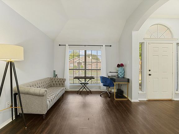 MOVE IN READY & WON'T LAST LONG! Discover your ideal haven in this charming 4-bedroom, 2-bathroom home, nestled within a tranquil cul-de-sac in the heart of central McKinney. High ceilings create an airy, open ambiance, welcoming you into a space designed for both relaxation and entertaining. The well-appointed kitchen boasts an upgraded dishwasher, ample cabinetry, and a spacious tiled bar with extra storage, making meal prep a breeze. The adjacent breakfast nook, illuminated by a stylish chandelier and bathed in natural light from the large window, seamlessly flows into the inviting living room. Gather around the gas fireplace, featuring custom tiling and mantle, creating a focal point for cozy evenings. The generous master suite offers a peaceful retreat with vaulted ceilings, elegant vinyl plank floors, abundant windows, and a private ensuite bathroom. Enjoy the double vanity and a stand-up shower with an upgraded shower head, perfect for unwinding. New roof June 2025! Living on a cul-de-sac offers the benefits of reduced traffic, enhanced safety, and a quieter environment, ideal for families and those seeking a serene setting. This home provides the perfect blend of modern amenities and a sought-after location. Seller offering assitance with closing costs!