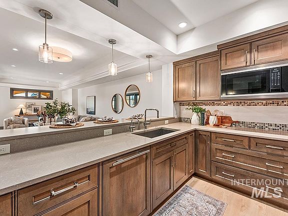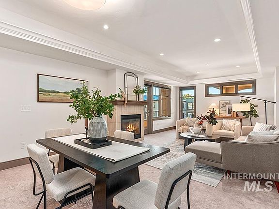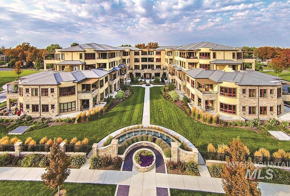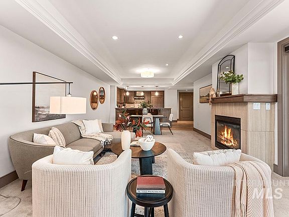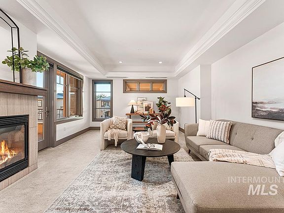 Set just above the city lights with a front-row seat to Boise’s skyline & the mountains beyond, this luxury condominium captures the essence of refined living. Perched on premier Crescent Rim, the residence offers fine finishes, effortless sophistication & a resort-style setting. Two reserved parking spaces in the enclosed garage provide convenient elevator access to the single-level condominium. Inside, a sense of calm & craftsmanship unfolds. Hardwood floors & freshly painted walls extend from entry into great room. Rich wood cabinetry, modern granite countertops, high-end, beautifully finished cabinet-front appliances & a Wolf gas range anchor the chef’s kitchen – an elegant space designed for both everyday comfort & elevated entertaining. The open living & dining areas feature tray ceilings with soft accent lighting, gas fireplace & doors that open to a covered balcony where the sounds of a water feature mingle with sweeping views of the foothills & downtown. The primary suite offers private access to the balcony, a spa-style en-suite bath with dual vanities, soaking tub & a frameless rain shower. A secondary bedroom & full bath offer flexibility for guests. A convenient office niche is located off of the entry. Residents enjoy an array of resort-style amenities, including an impressive pool, hot tub, club room, fitness center & reservable guest suites for visitors.