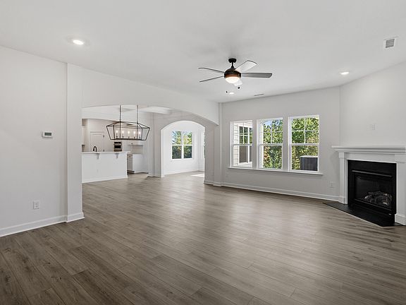 Welcome to this exquisite home with a grand two-story foyer that sets the stage for luxury and comfort. The 3-car garage offers ample space for vehicles and storage, while the formal dining area features elegant coffered ceilings and a butler's pantry, perfect for entertaining. The heart of the home is the gourmet kitchen, boasting a raised bar and prep island, making meal prep a breeze. Enjoy cozy evenings by the gas fireplace in the spacious family room, or unwind in the bright and airy sunroom with views of the wooded backyard. Upstairs, discover a generous open loft that serves as a perfect retreat, along with three large secondary bedrooms and two full baths. The luxurious primary bedroom features a high boxed ceiling and a spa-like primary bath with a 5' walk-in shower with a frameless door, separate sinks, and two linen closets for added convenience. For ultimate privacy and comfort, there's an additional guest suite on the main level, complete with a 5' tiled walk-in shower. The home is backing to trees, offering a peaceful and serene setting that you'll love coming home to. Don't miss the chance to make this exceptional home yours!
