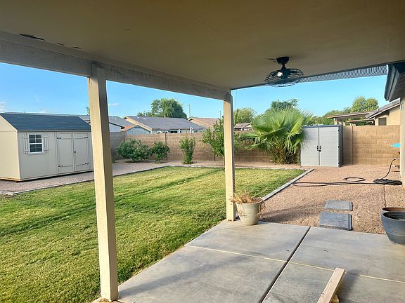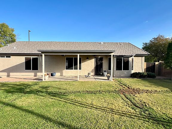 The desert hued home blends in nicely with the mature desert landscaping in the front. Enjoy grass in the huge, private backyard with dwarf lemon, lime, orange and multi-apple trees that are already producing fruit - lemons by Christmas!
