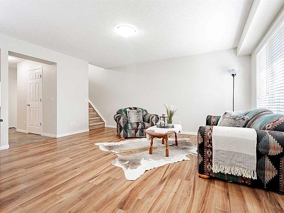 This welcoming 3 bedroom, 2.5 bath home is a wonderful fit whether you’re starting out, upsizing, or downsizing, and comes with the bonus of no condo fees. The main floor features a bright and inviting layout with a spacious front living room that flows into the dining area, both finished with easy-care laminate flooring, and a kitchen with plenty of counter and cabinet space. Upstairs, the primary suite offers a private retreat with a walk-in closet and 3-piece ensuite, while two additional bedrooms and a newly tiled 4-piece bathroom provide comfort for family or guests. A bright flex/bonus room with double sliding doors leads to a large upper deck with privacy panels, creating the perfect spot to relax or entertain. The unfinished basement with plumbing rough-ins is ready for your future plans, and the double attached garage with paved lane access adds everyday ease. With a welcoming front porch, a location across from Windsong Heights School and playground, and minutes to Chinook Winds Regional Park and shopping, this home blends flexibility, charm, and modern convenience. Photo of 2nd bdrm is virtually staged.