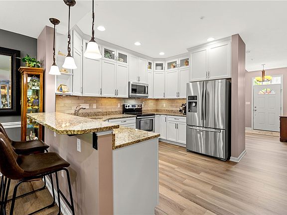 Main floor maintenance free living in the sought after community of Neville Manor! Phenomenal outdoor entertaining w/ private covered veranda extending the full span of the unit! Refined perfection w/ open concept floor plan, gleaming LVP flooring throughout main level & 1st fl laundry. Updated kitchen features sparkling white cabinetry that extends all the way to the ceiling, glass display cases, stainless steel appliances & granite counters complete w/ breakfast bar! Showstopper great room w/ cathedral ceiling, statement gas fireplace & shimmering curtains of glass paint a picture of the lush landscaped views! First floor owner's suite w/ barn doors that lead to en-suite bath w/ dueling sink vanity, water closet & an abundance of closet space. Second floor houses loft area overlooking great room, 2 additional bedrooms, full bath & 11 ft. long storage room. 2 car attached garage. Owners have been diligent in their attention to detail to afford the conveyance of a turn key property.