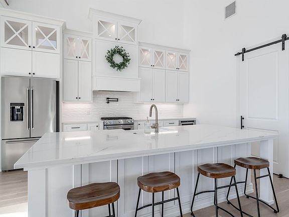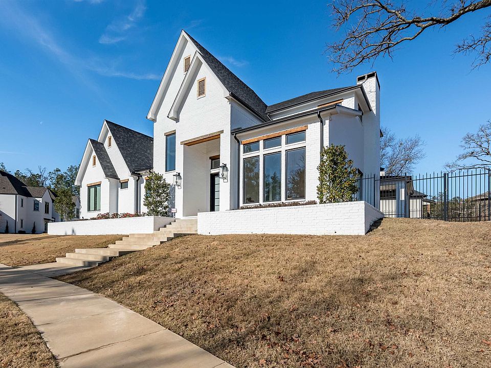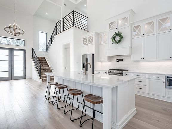 Welcome home to this modern 4 bedroom, 3 bath home in The Crossing, one of Tyler's most sought-after neighborhoods! Built in 2021, this home showcases clean lines and high-end amenities throughout. As you step inside, you are greeted by soaring 25 ft ceilings, creating an immediate sense of grandeur and space. The heart of the home is the open-concept kitchen and living area, perfect for entertaining guests. The chef's kitchen is equipped with a double oven, gas cooktop, and a 10 ft island, offering plenty of seating for family and friends. Adjacent to the kitchen, the spacious dining area is bathed in natural sunlight thanks to the large windows. The master bedroom suite is a true retreat, featuring an amply sized bedroom and a luxurious en-suite bathroom with a slipper tub, deck surround, and a walk-in shower with a large rain head. The bathroom also includes a long double vanity and leads to a large walk-in closet, providing abundant storage space. Additionally, the downstairs area includes a guest bedroom, utility room, and an opulent bathroom. A beautiful staircase with custom wrought iron handrailing leads to the upper level, which boasts a spacious landing, office, and two more bedrooms, ensuring plenty of space for everyone. The home is also designed with creative storage solutions, including built-in dressers, a large pantry, as well as its spacious three-car garage. Step outside to discover an ample backyard with a large covered patio, complete with a firepit and an outdoor kitchen area, ideal for enjoying beautiful evenings or Summer days. This home, situated near all of Tyler's newest amenities as well as the Legacy Trail, is a must-see. Schedule your visit today and experience the perfect blend of luxury and comfort!