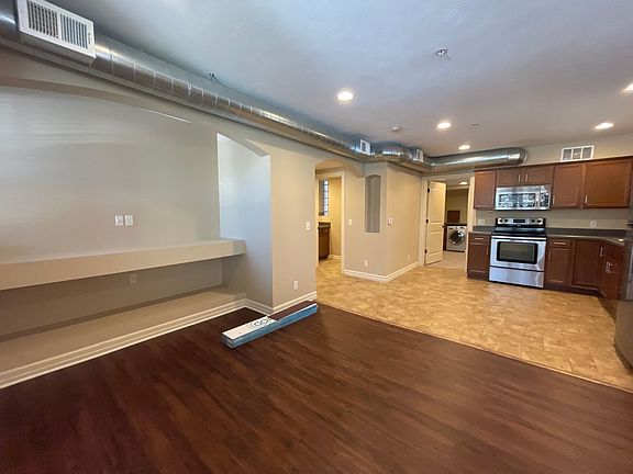 Built-in entertainment centerCentral airHuge walk-in closetStainless steel appliancesWood floorsExposed brickWasher and dryer