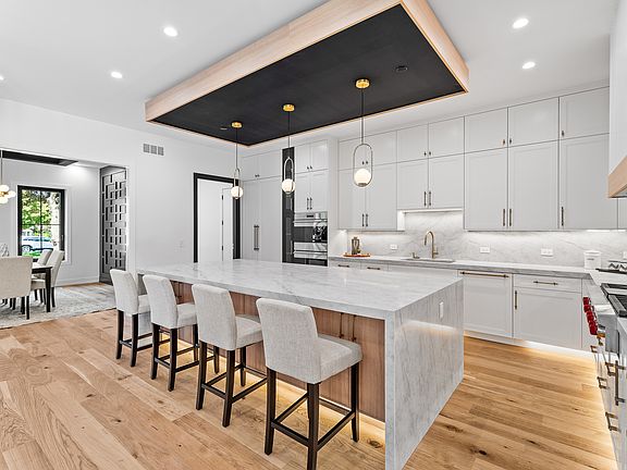 Generously sized in-law suiteStylish wet barSoaring ceilingsHigh-end finishesMassive islandPrivate en-suite bathTop-of-the-line stainless steel appliances